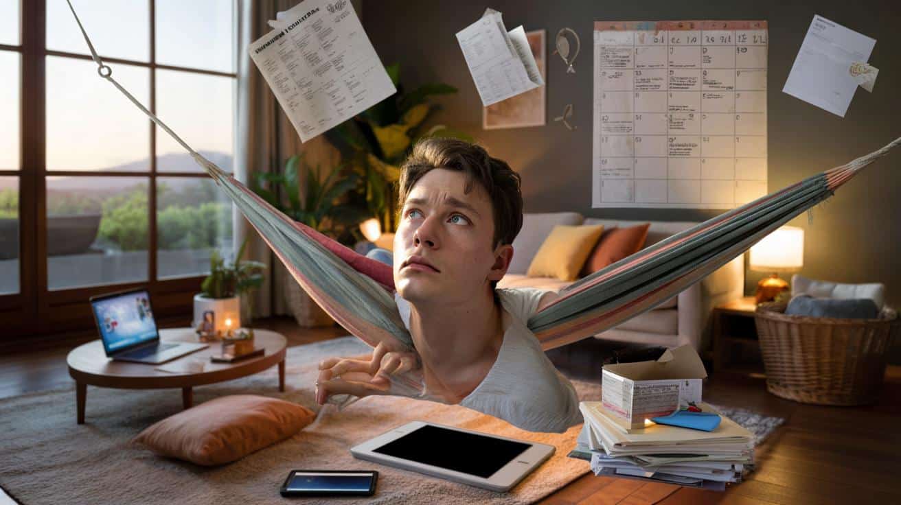 The hammock was perfect on paper. Soft throw, favorite playlist, phone on silent for once. I lay down, told myself, “Rest. Just rest.” Thirty seconds later, my brain had already opened 14 tabs: unanswered emails, laundry in the machine, that awkward message I sent three days ago. My body was lying down, but inside I was still running.