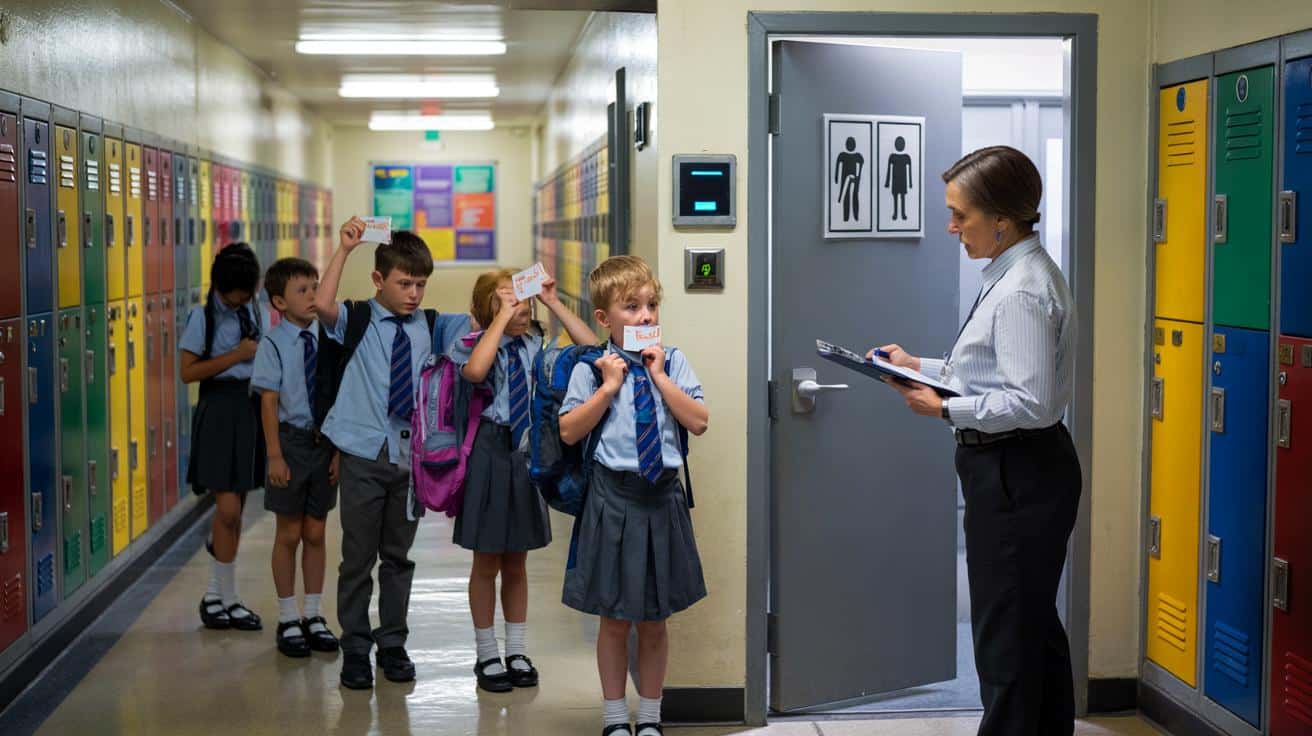 The bell rings, lockers slam and a line of kids snakes down a fluorescent corridor. At the very end, near a scuffed “Restrooms” sign, a small card reader blinks green. A teacher stands with a clipboard, ticking boxes as children hold out plastic passes linked to their parents’ accounts. One girl shifts from foot to foot, whispering that she forgot hers. The teacher’s smile tightens. “You’ll have to wait.”