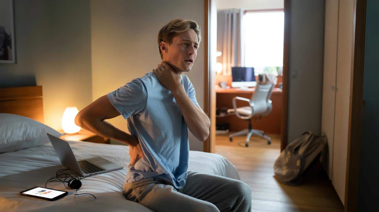 You spend eight hours hunched toward a laptop, half an hour jammed into public transport, then an evening on the couch with your neck tipped forward toward your phone.