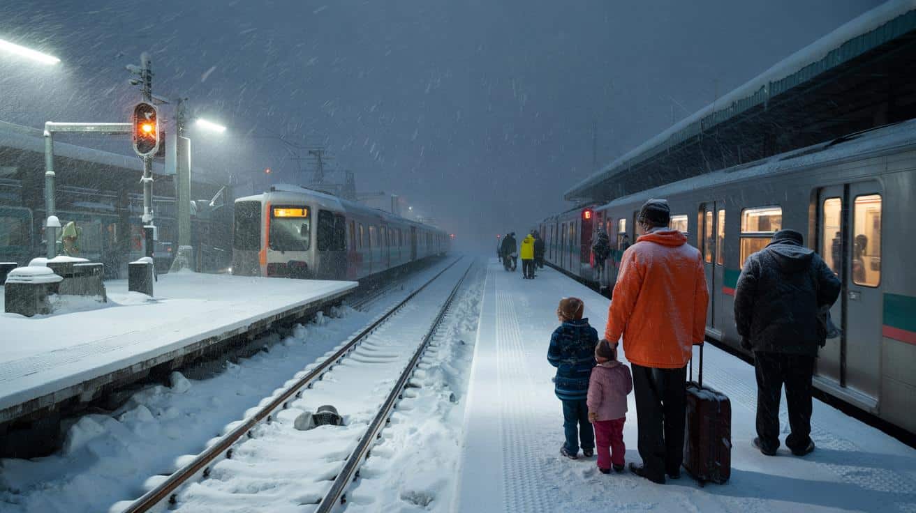 The first flakes looked almost decorative at sunrise, dusting the platforms like powdered sugar. Commuters took quick photos, breath misting in the cold, still believing the 7:42 would glide in, right on time. Ten minutes later, the loudspeakers crackled, and the first delay notice rippled through the crowd. You could feel the mood drop with the temperature.