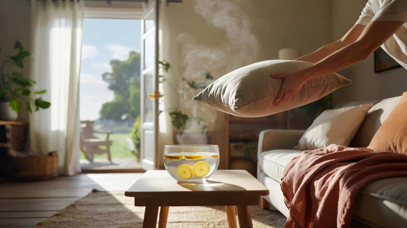 While the air circulates, place a small bowl filled with hot water and a few lemon slices or coffee grounds in the center of the room. Leave it there for 15–20 minutes. That’s it. No gadgets. No spray.