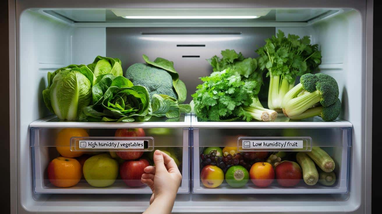 | Use humidity drawers properly | One high-humidity drawer for greens, one low-humidity drawer for fruits and firm veg | Keeps vegetables crisp several days longer |
