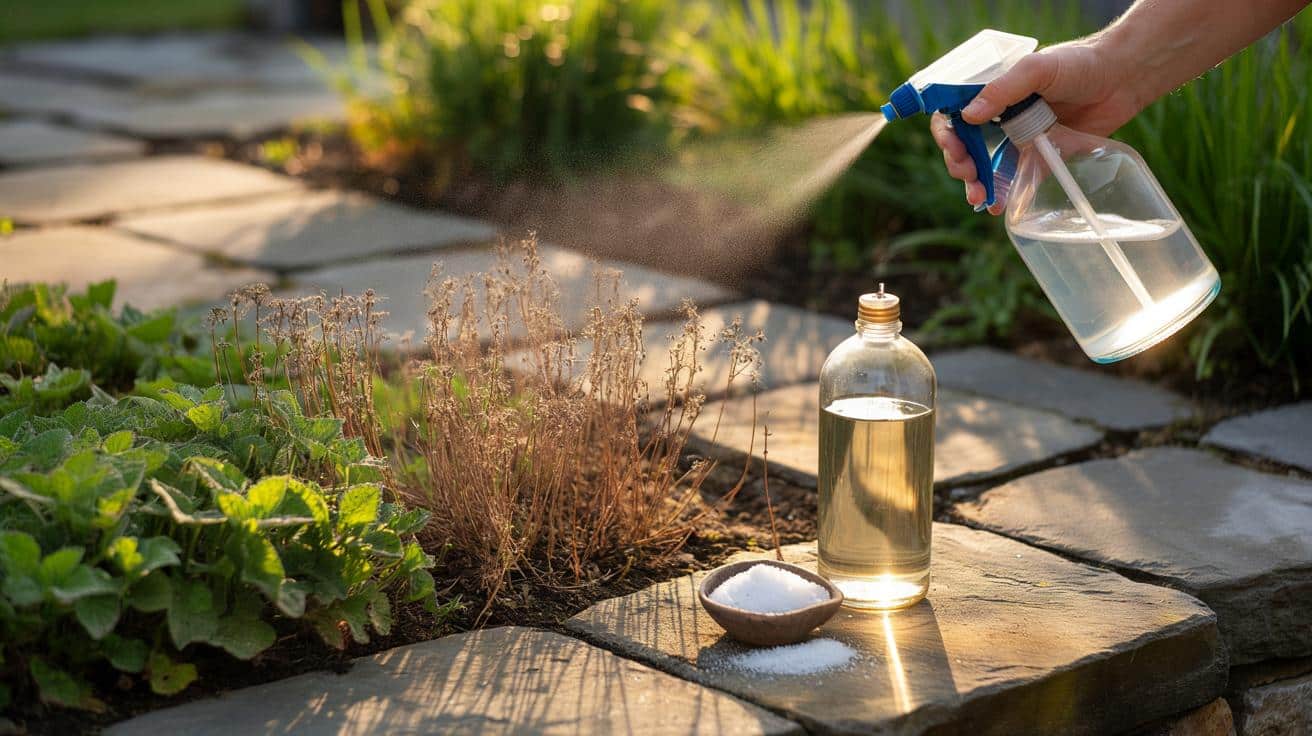 The method that keeps coming up among home gardeners is stunningly straightforward. You take a large spray bottle or garden sprayer, pour in one liter of household white vinegar (around 5% acetic acid), then add two to three tablespoons of fine table salt. Stir or shake until the salt dissolves as much as possible.